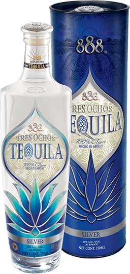 Reverently produced from the heart of the Agave pina to capture the spirit of Mexico, 888 Tres Ochos Silver is double distilled, crystal dear, lightly peppered with the nose and palate of sweet roasted Agave infused with hints of vanilla, honey, fruit undertones and a delicate sachet of spices, culminating in a soft, smooth, elegant finish.